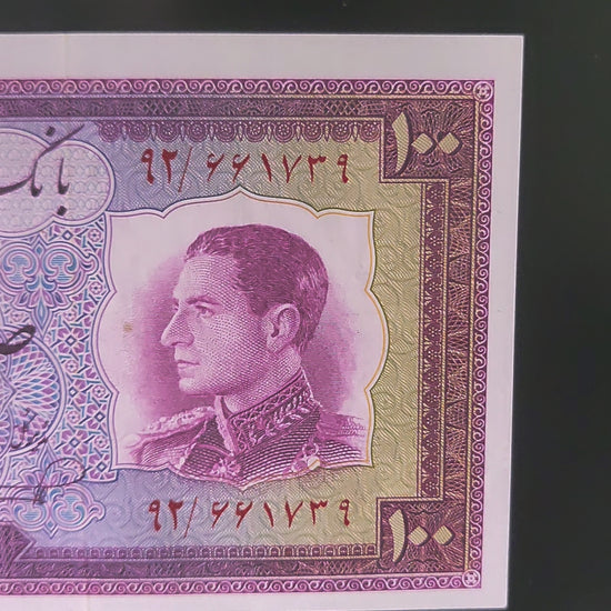 100 Rials 1954 Pahlavi Persian Nimrokh note Uncirculated Gem UNC P 67