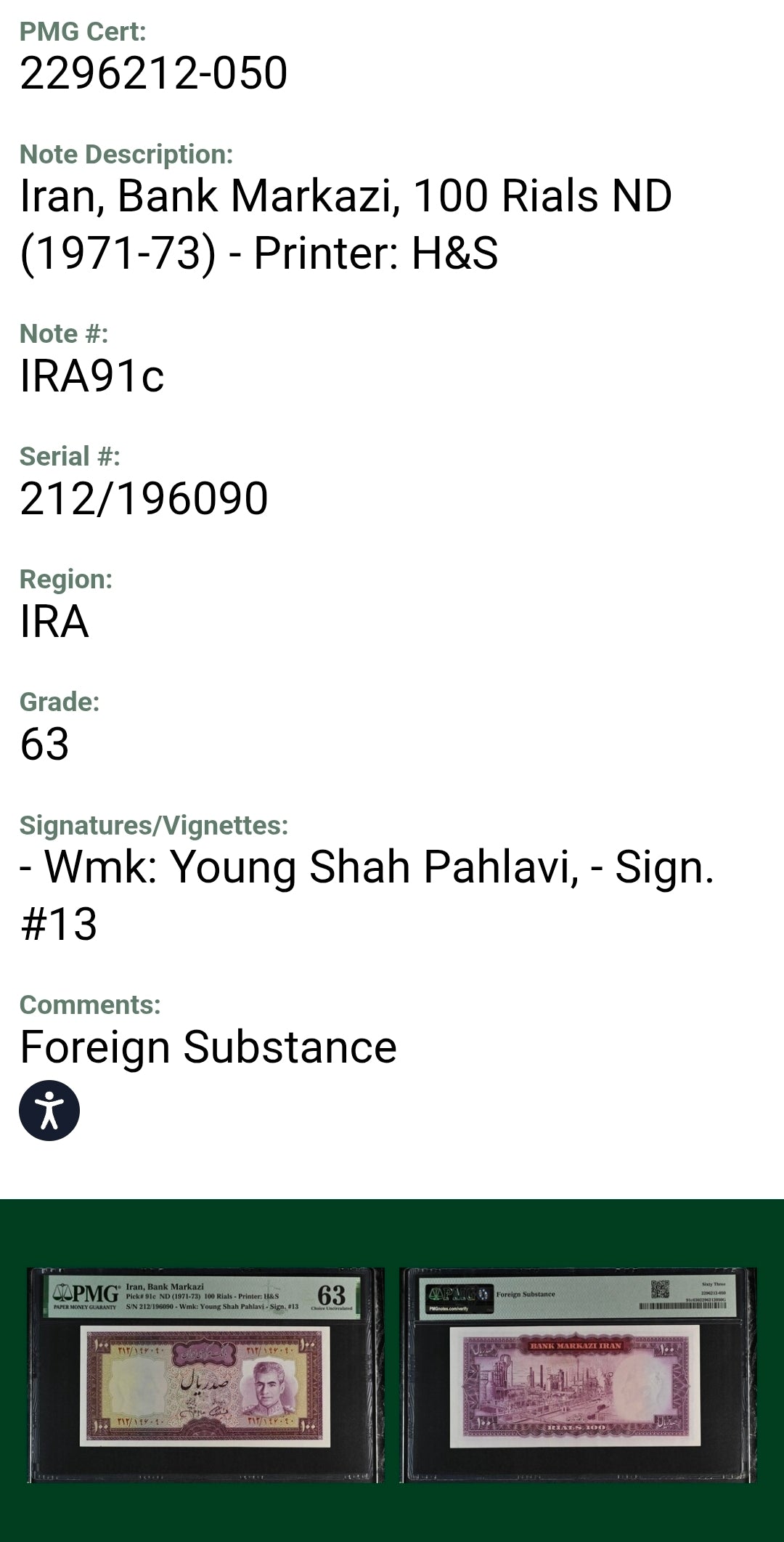 100 Rials 1971 Pahlavi Persian note PMG 63 Choice Uncirculated P 91c
