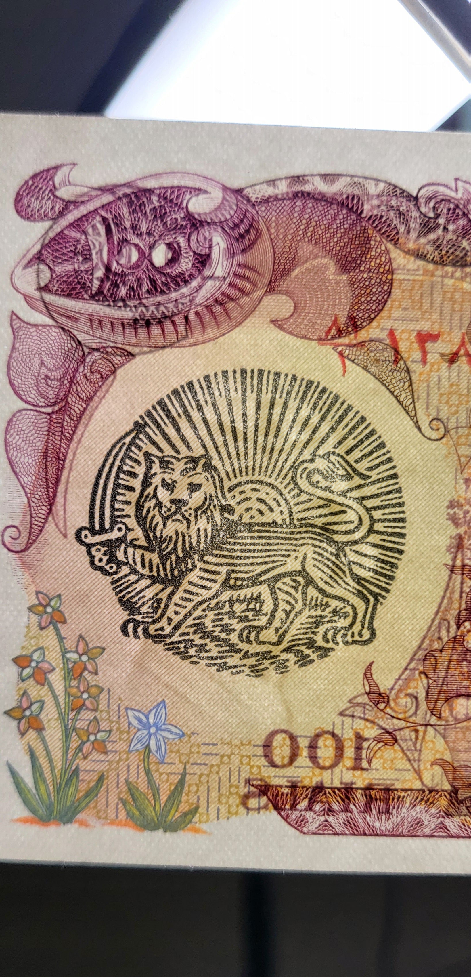 100 Rials 1979 Pahlavi Overprint Surcharge Persian note Uncirculated Superb P 118b