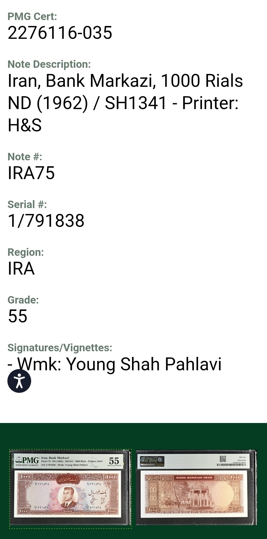 The 1000 Rials banknotes from the 1962 (P-75) and 1965 (P-83) issues share a common design and physical size. The sole distinction between these two varieties is their signature combination. Despite this difference, their market value remains comparatively similar. Historically, these two particular issues are recognized as the longest-sized banknotes released during the reign of Mohammad Reza Shah Pahlavi II.