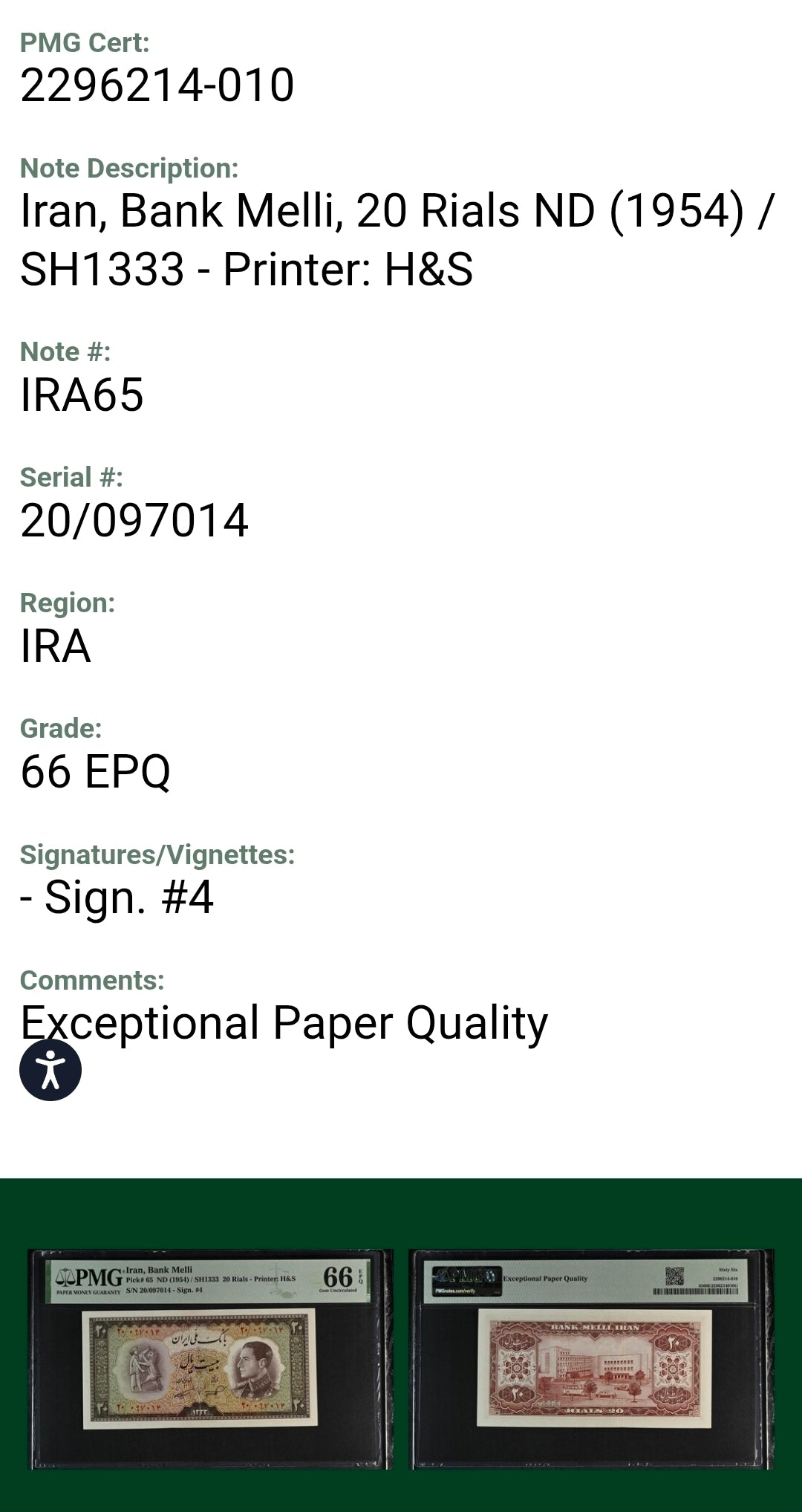 You are kindly buying one single note from 1954 with an exceptional PMG grade 66 EPQ. Please also see the raw notes and the other available grading for this note.