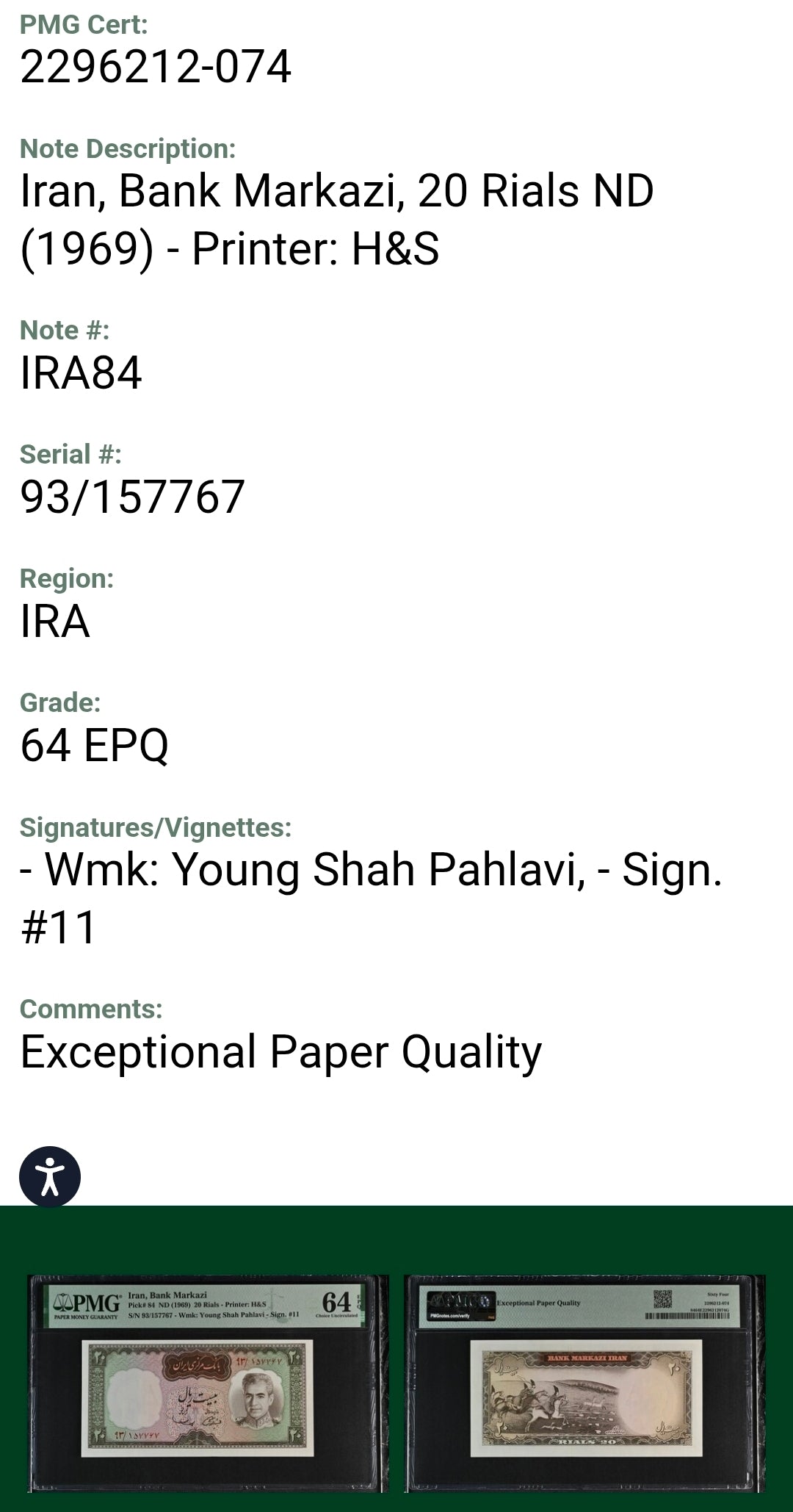 You are kindly buying one single note from 1969 with PMG grade 64 EPQ.