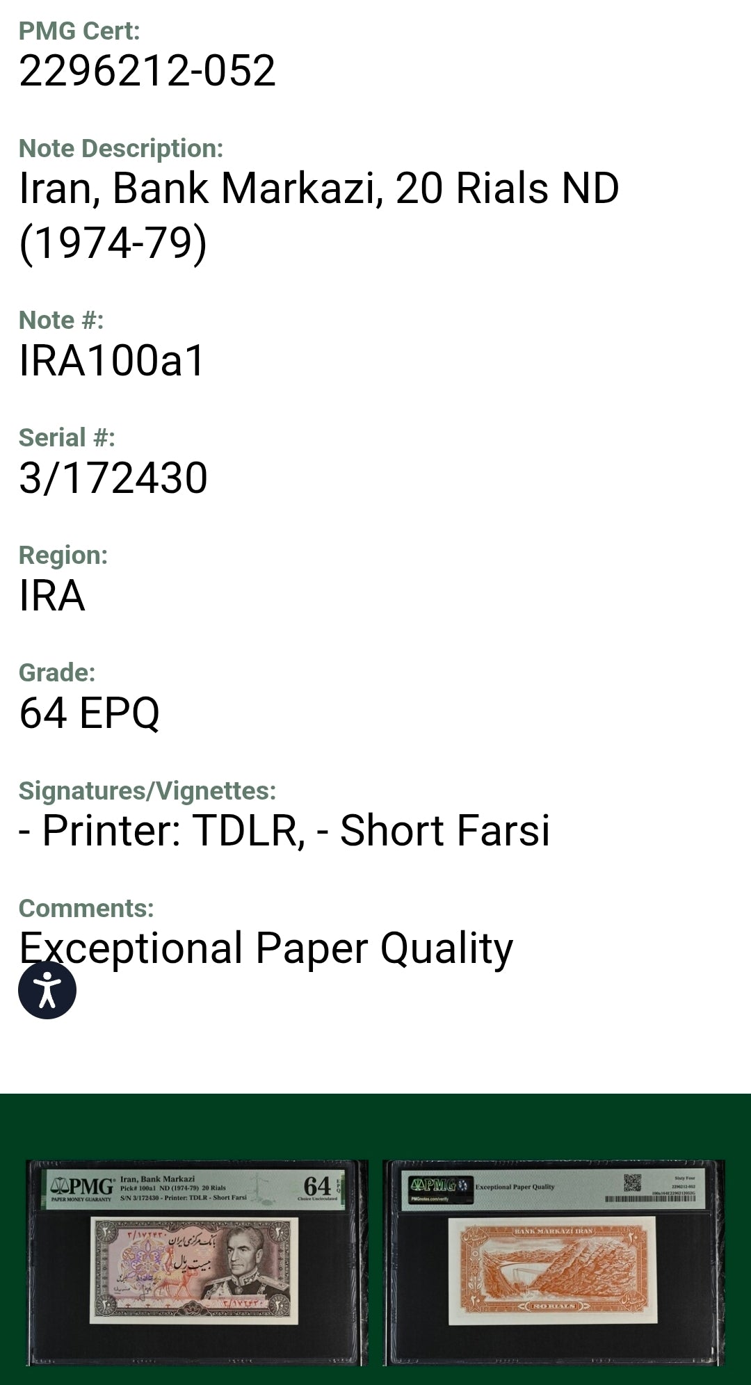 This note is a must have and basic note for collectors interested in Pahlavi banknotes. The raw notes are also available.