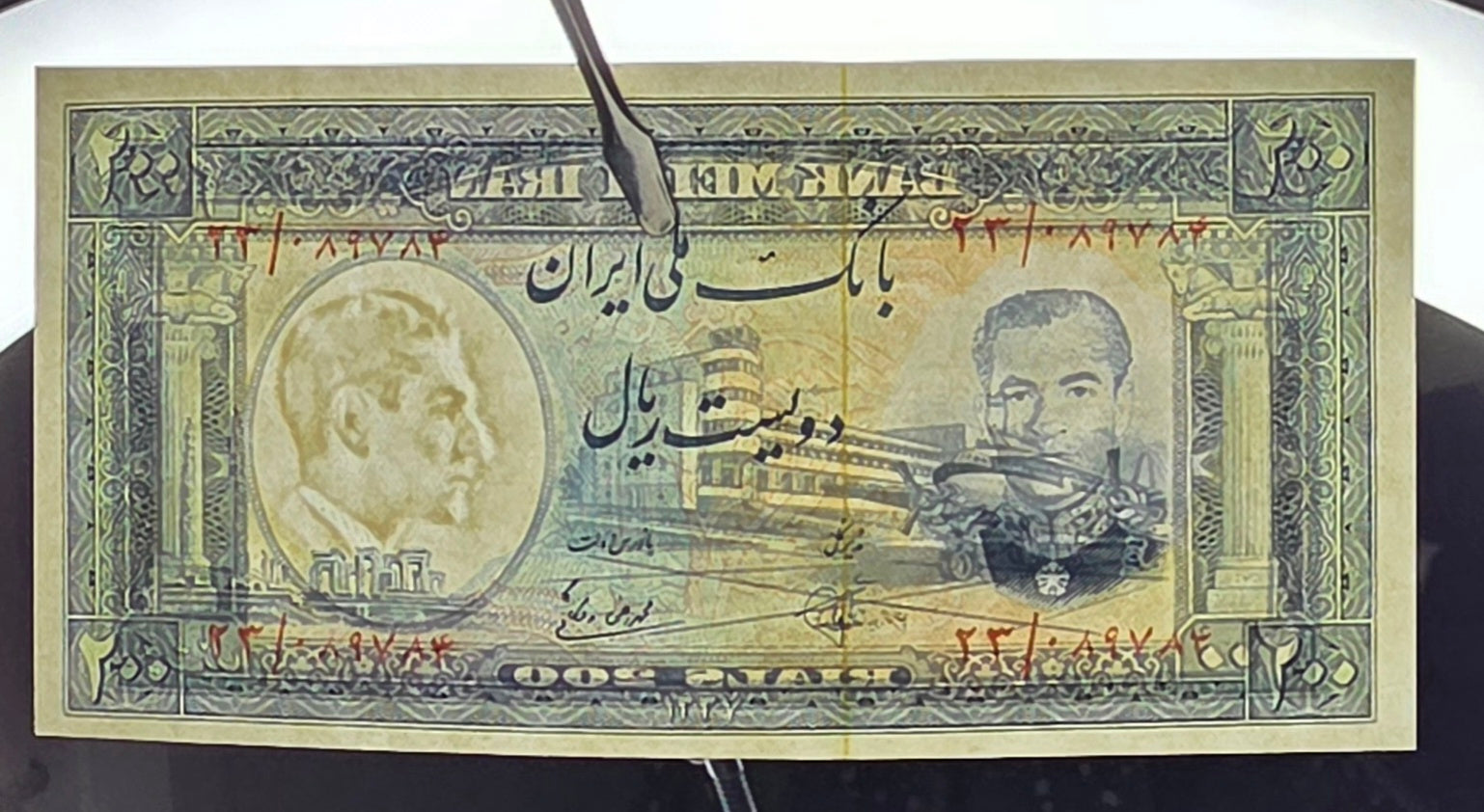 You are kindly buying three banknotes as seen in the pictures. This is the full Set of 1958 Pahlavi banknotes. The quality of the banknotes is Gem Uncirculated. The 200 Rials is rare in this quality.