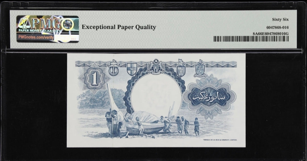 One Dollar 1959 Malaya & British Borneo PMG 66 EPQ Gem Uncirculated UNC (Consecutive notes)
