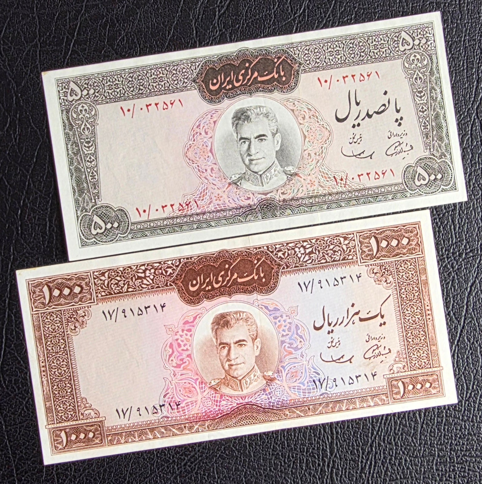 Set of 500 and 1000 Rials 1969 Red Epigraph Pahlavi Persian note Dollar design About Uncirculated AUNC quality P 88 and P 89